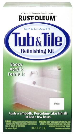 Rust-Oleum 7860519 Tub And Tile Refinishing 2-Part Kit White CDN7195. Rust-Oleum Specialty Tub Tile Aerosol is a one-step acrylic epoxy spray paint designed to provide excellent adhesion durability and color retention in high moisture areas.