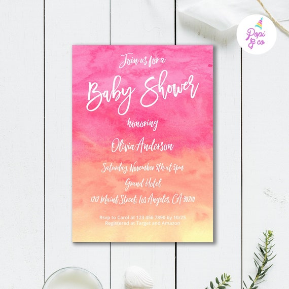 Pink And Orange Baby Shower Invitations.